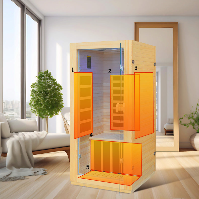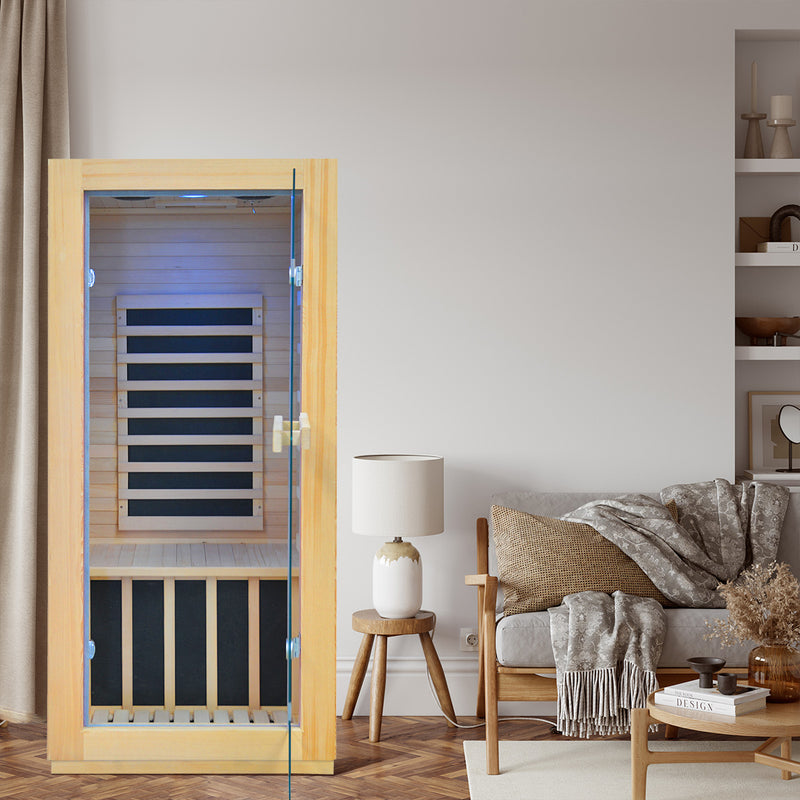 Experience comfort and efficiency with the HY-MINI indoor infrared sauna-compact in size, powerful in performance, and crafted for solo relaxation.