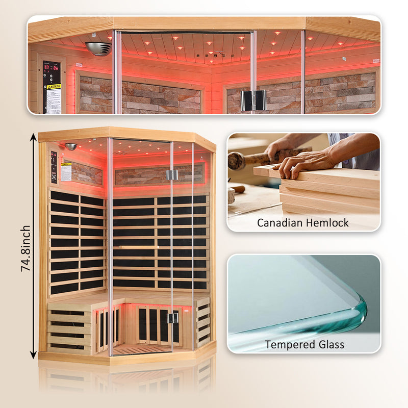 Outexer HS4 Corner Infrared Sauna for 2-3 Person | Canadian Hemlock