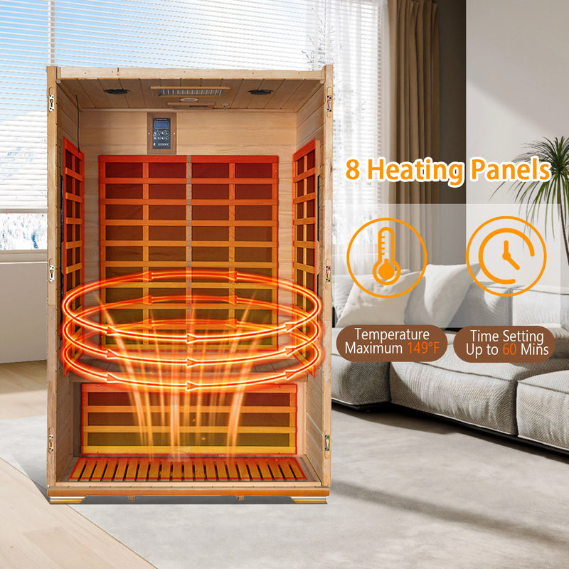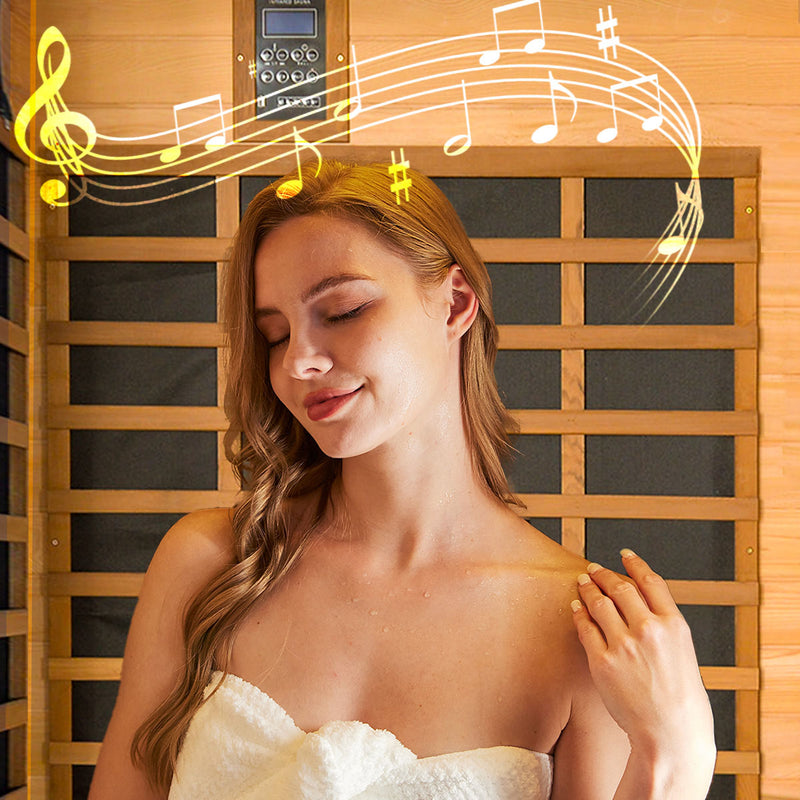 Built-in 8 far-infrared epoxy heating panels with a power of up to 2080W. Experience the effects of infrared therapy: penetrating deep into the skin, relieving fatigue, promoting blood circulation and metabolism. The smart control panel is easy to operate, with adjustable time and temperature, and advanced Bluetooth speakers and soft LED lights bring an immersive relaxation experience.
