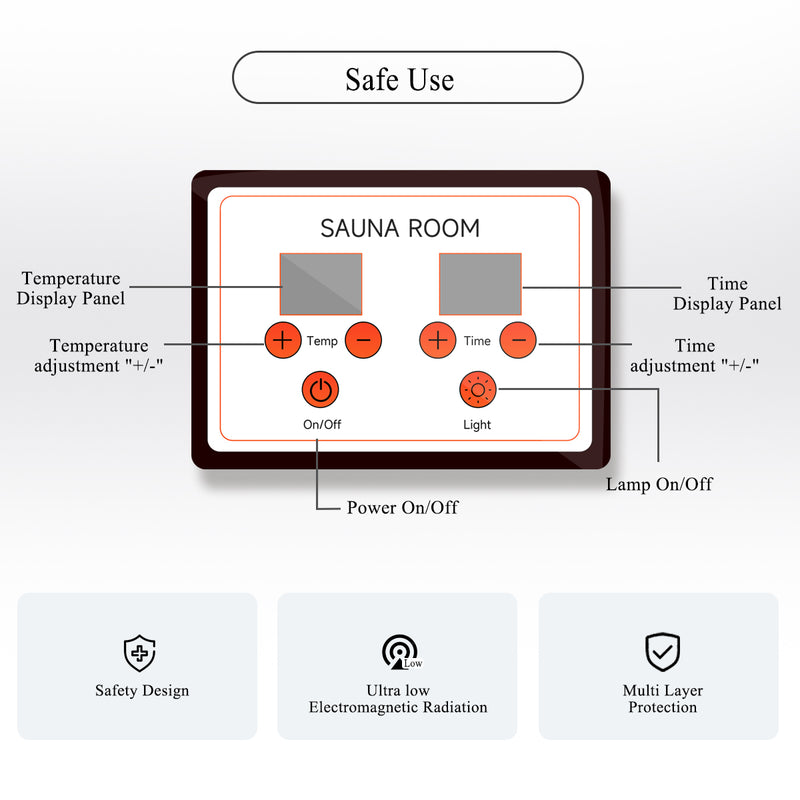 The HY1 is equipped with a smart control system, which can adjust the timer and multiple safety features (including anti-dry burn, automatic shutdown and high temperature protection) to give you a safe and personalized sauna experience. It is easy to assemble, clean and maintain, making it perfect for your bedroom, bathroom, basement or home gym.